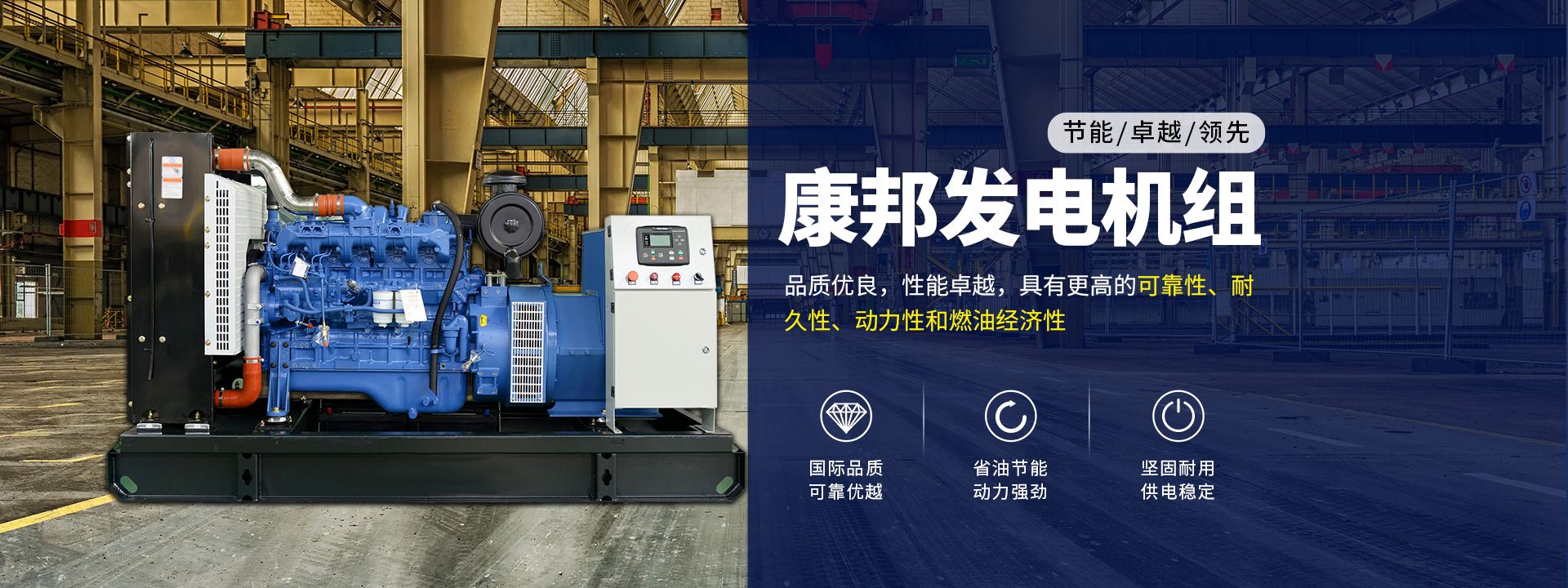 康邦生產的柴油發電機組所配套的動力為玉柴、上柴、濰柴、沃爾沃、康明斯、珀金斯等國內外知名柴油發動機品牌,產品在各個方面符合國家、行業規范標準及合同規定的質量、規格和性能要求,并通過ISO9001質量體系認證。