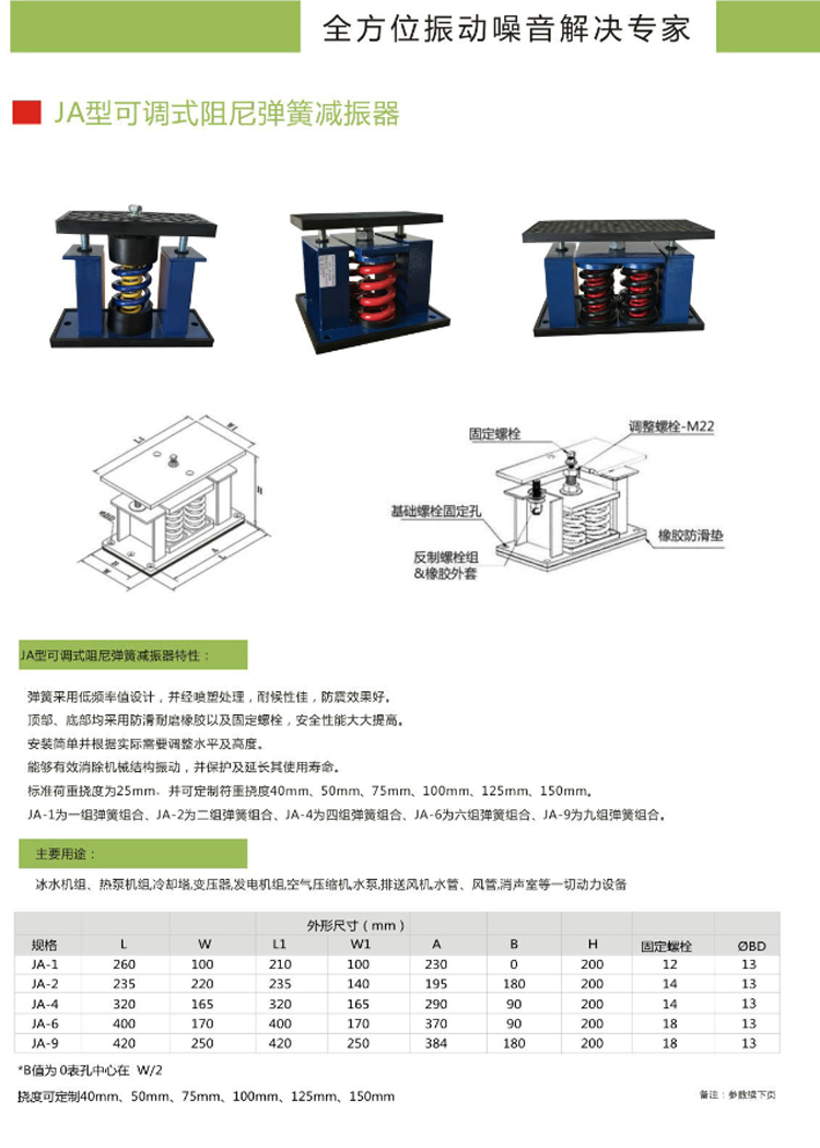 1、彈簧采用低頻率值設計,并經噴塑處理,耐候性佳,防震效果好。