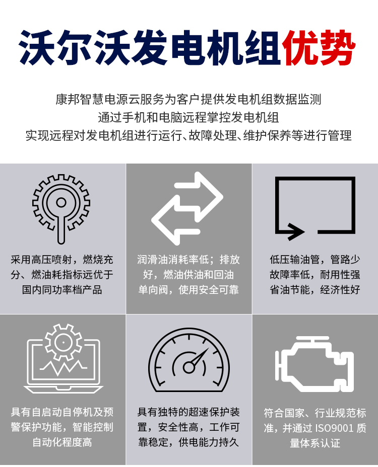 康邦可為不同行業提供30KW-3000KW不同規格、普通型、自動化、四保護、自動切換及三遙監控、低噪音及移動式、自動化并網系統等特殊電力需求的柴油發電機組。